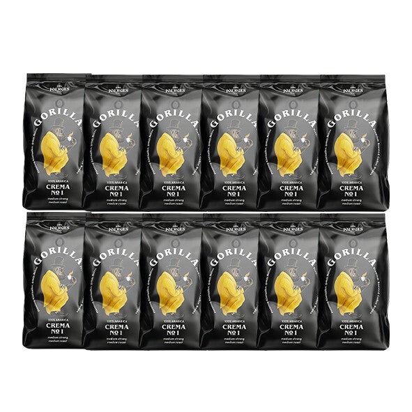 Gorilla Crema No.1 Kaffeebohnen; Eine hochwertige Komposition bester Hochland-Arabicakaffees. Feinste Geschmackssäuren umschmeicheln den Gaumen, die feste Crema streichelt ihn.