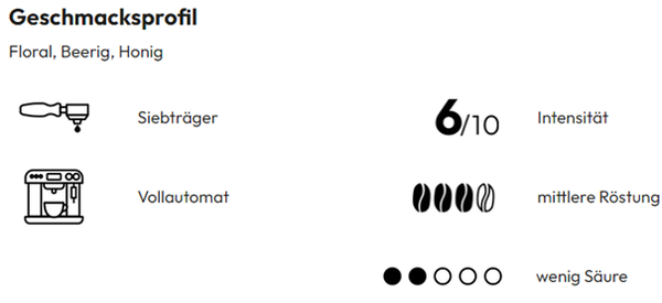 - Besonders harmonisch mit stabiler Crema und einem geringen Koffeingehalt